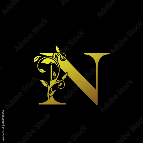 N Gold Letter Logo With Luxury Floral Design Golden N Vintage